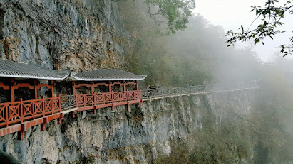 Казалось бы, гора с отверстием и все. Но, мы же в Китае. Здесь говорят, что дракон может пролететь сквозь эту гору, да тому кто продет 999 ступень снизойдет невероятно ценная мысль - просветление. Не просто пространство в горе, а ворота в небесные чертоги. Гулять здесь приятно, особенно в хорошую погоду. Несколько эпизодов на маршруте, будут оснащены прозрачным полом. Масштаб открывающихся пейзажей никакое фото не передаст! Прекрасно!