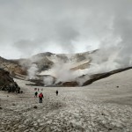 Фумарольная деятельность вулкана Мутновский длится уже несколько тысячелетий, и стенки кратера окрашены всеми цветами радуги. У вулкана два кратера: его буквально разодрало последним извержением. Горелый имеет кратер с ледниковым озером бирюзового цвета. Лагерь мы разобьем у подножия фантастически красивого вулкана Горелый.